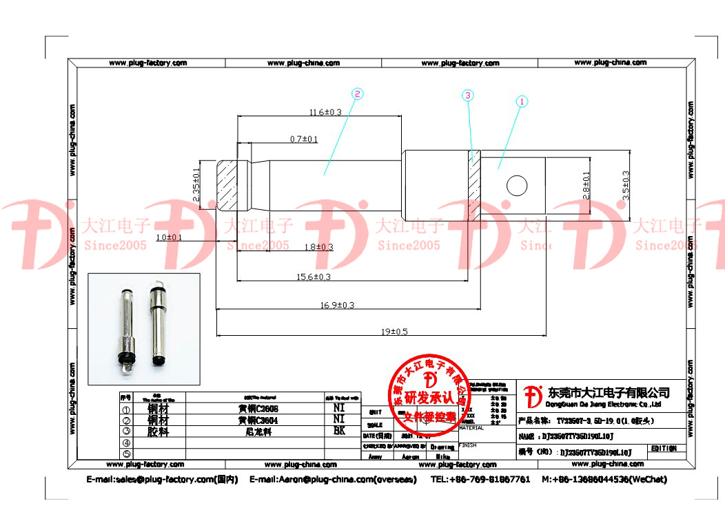 產(chǎn)品說明:音叉插頭-23507TV19L車管 鍍鎳黑膠