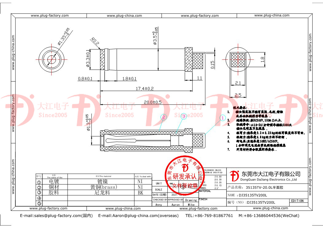 聯(lián)系人:張經(jīng)理聯(lián)系電話:13686018226電話:0769-81867761郵箱:dc-plug@163.com地址:廣東省東莞市茶山鎮(zhèn)松湖信息產(chǎn)業(yè)園7棟7樓
