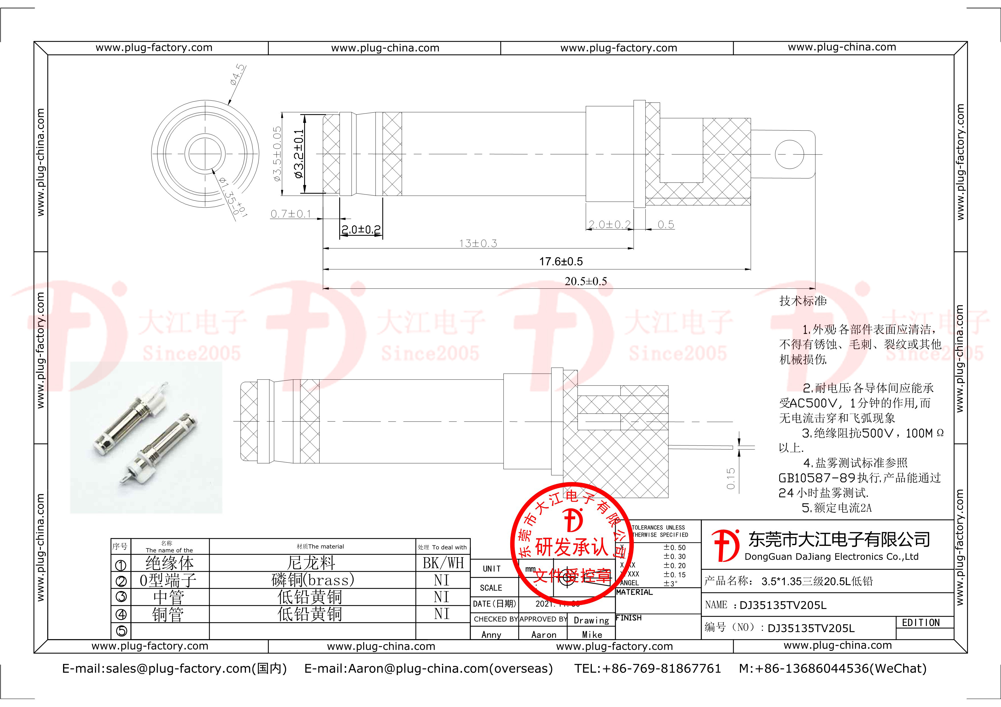 產(chǎn)品說明:音叉插頭-35135TV 三級 20.5L 低鉛 電源插頭