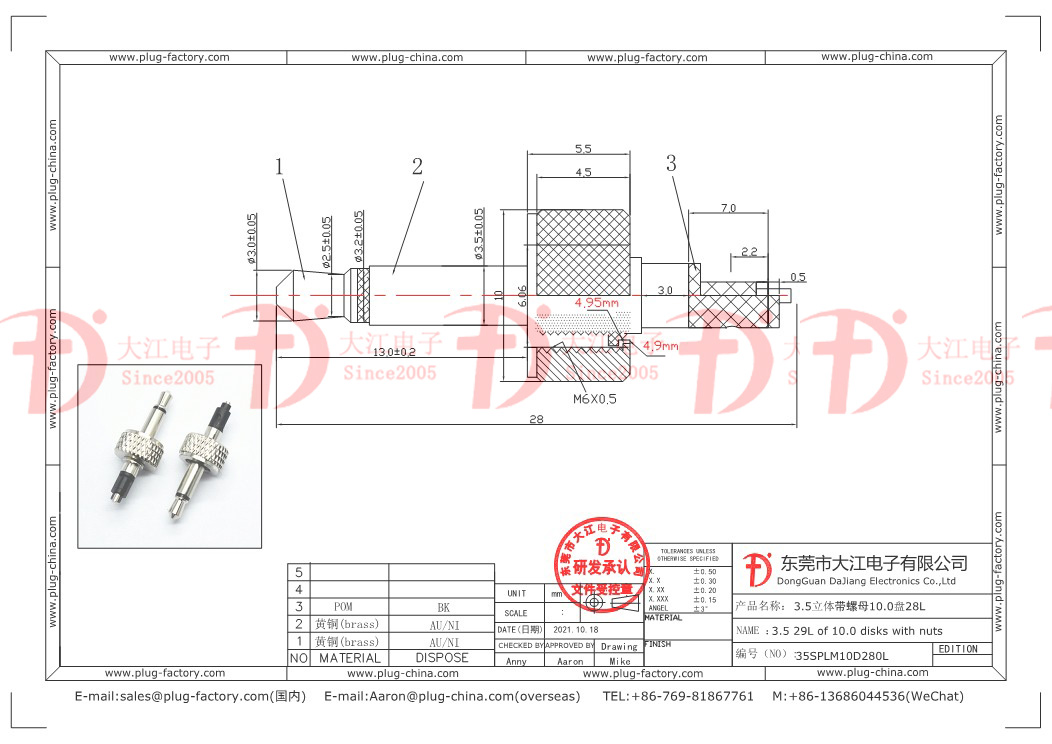 產品說明:耳機插頭-3.5單音帶螺母28L