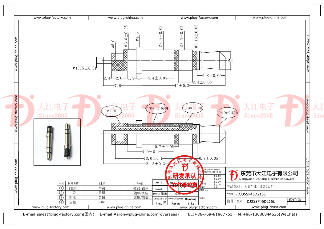 產(chǎn)品說明:3.5mm立體4.5盤21.5L鍍鎳 耳機(jī)插頭 ??