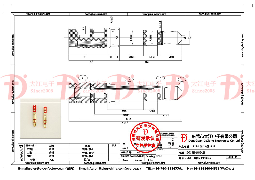 產(chǎn)品說明: 3.5mm立體4.0盤24.5紅膠鍍金 耳機插頭