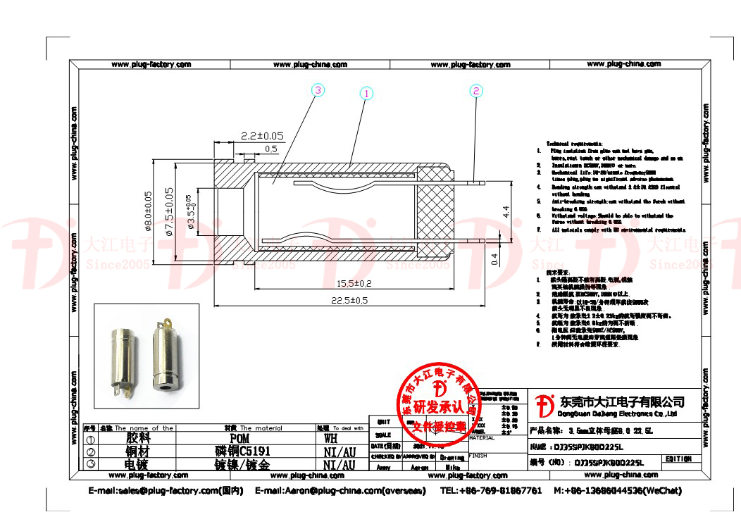 產品說明:3.5mm立體22.5L耳機母座 8.0 安全母座