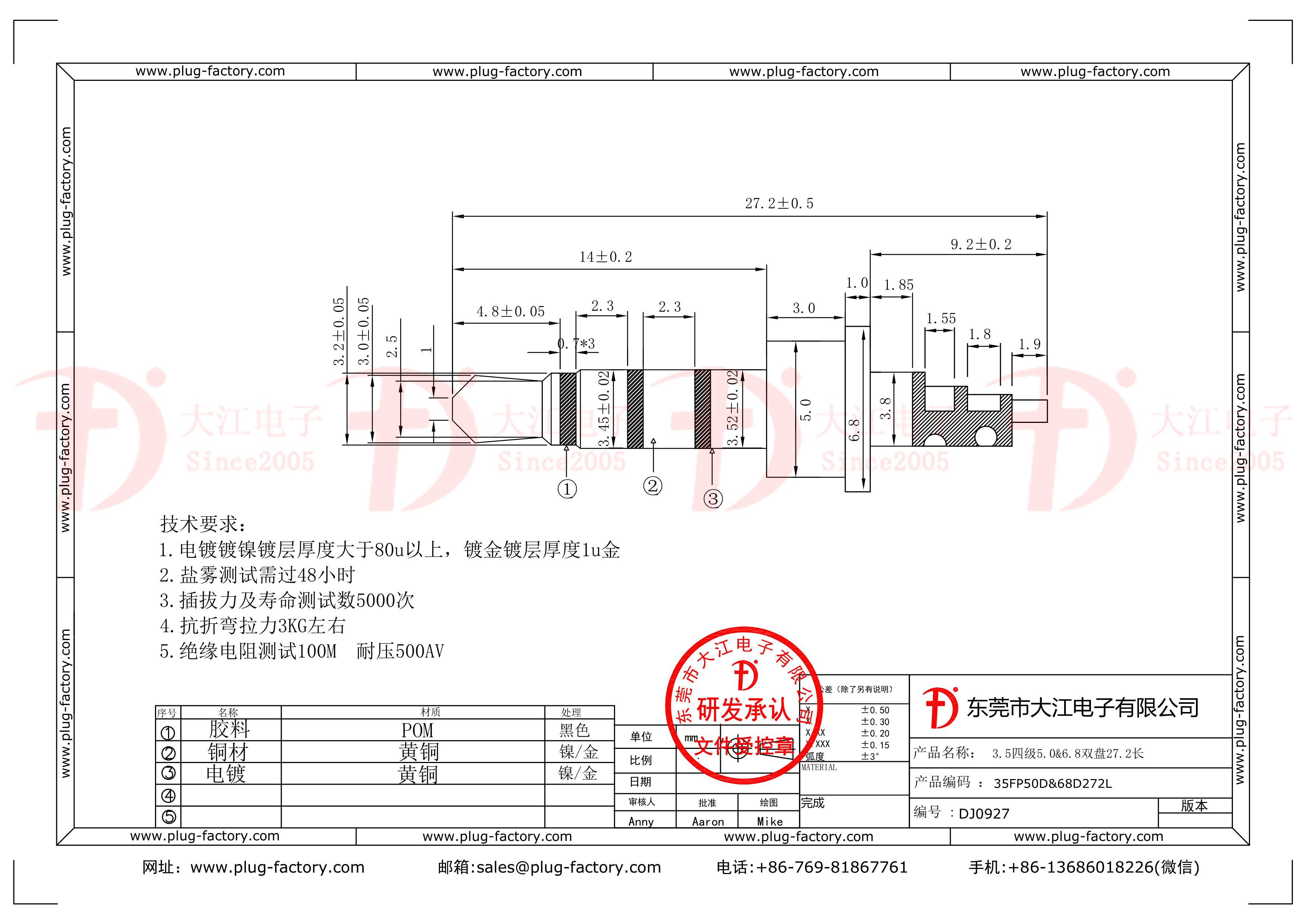 大江電子專業生產各類電子插頭及母座,主要產品有:DC插頭、耳機插頭、手機插頭、充電器插頭、音頻插頭、視頻插頭、USB插頭、插頭插座、DC頭、DC母座、DC插座、3.5耳機插頭、2.5耳機插針、耳機頭、RCA插頭、手機充電插頭、音叉插頭、大Din、MiNi Din、MiNi USB、USB插頭插座、電源插頭、轉換插頭及母座系列等,產品廣泛應用于手機、耳機、車載車充、數碼相機、玩具、游戲機及電腦等領域。