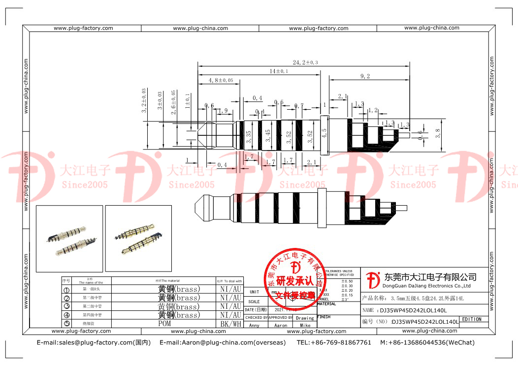 產品說明:3.5mm五級4.5盤24.5L鍍鎳 耳機插頭??