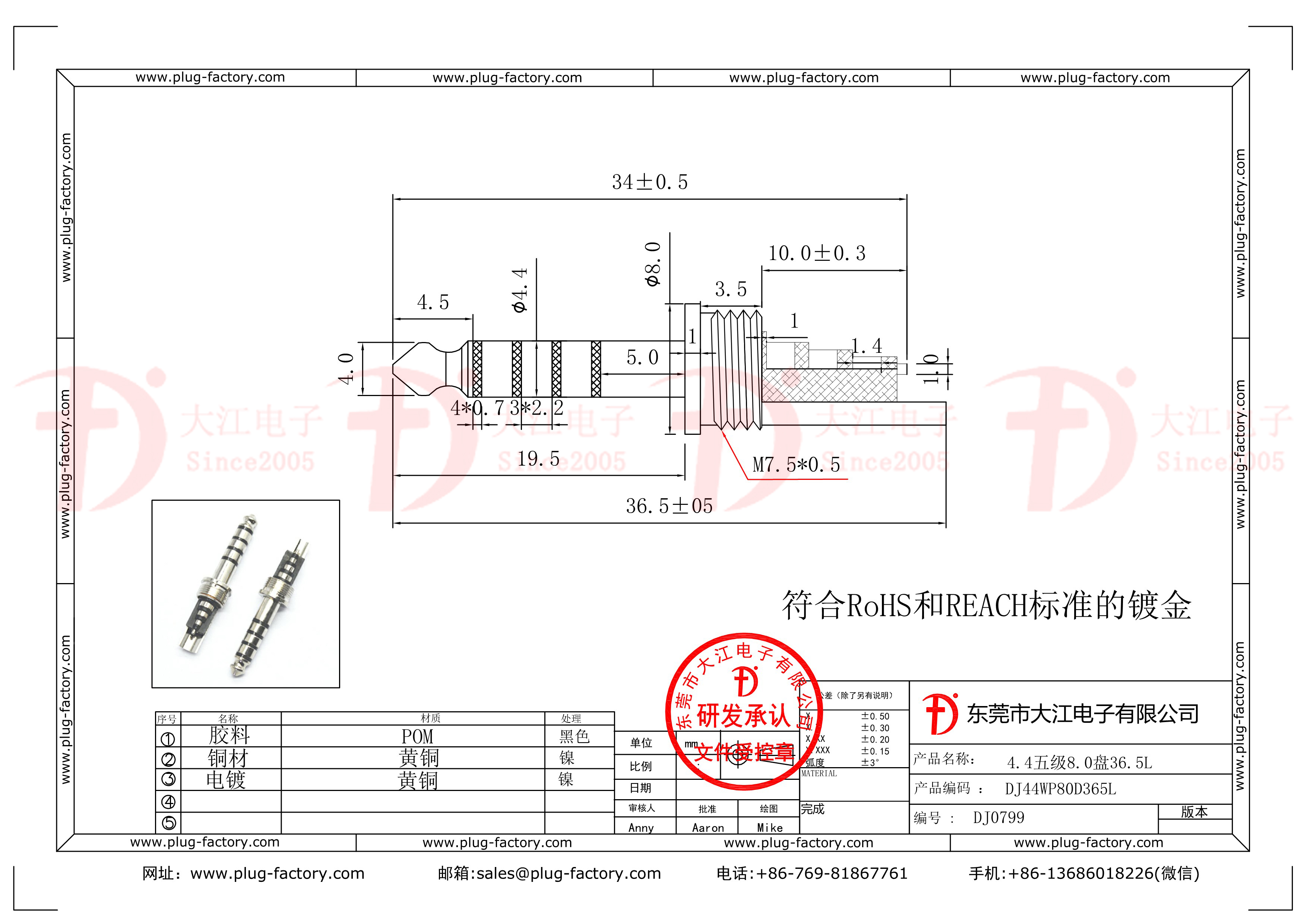 4.4五級8.0盤37.2L音頻插頭