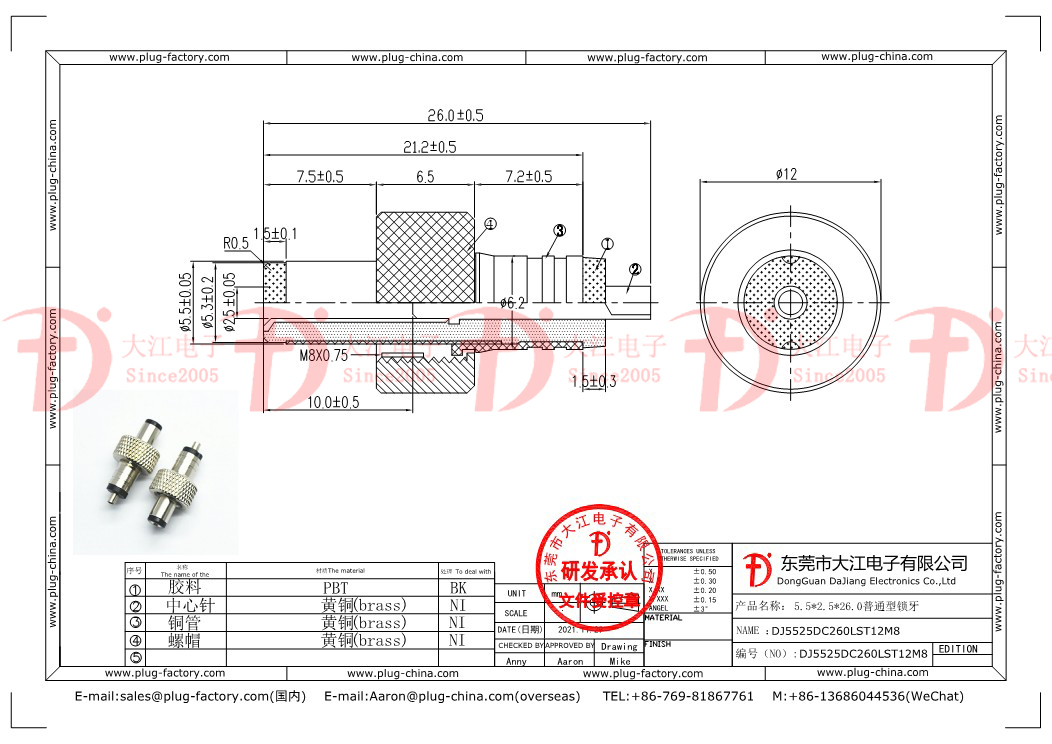 產品名稱:5525DC 26.0L鎖牙帶螺紋M8