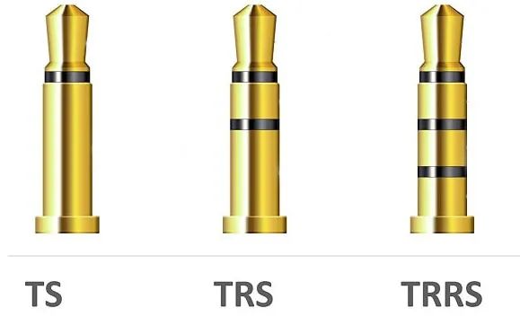 耳機(jī)插頭的導(dǎo)體接觸環(huán)中至少會(huì)包括一個(gè)Tip(尖端)和一個(gè)Sleeve(套筒)。大于兩段的,會(huì)多出相應(yīng)數(shù)量的Ring(圓環(huán))。所以也可以用環(huán)的數(shù)量去區(qū)分它們,分別會(huì)有TS/TRS/TRRS/TRRRS。