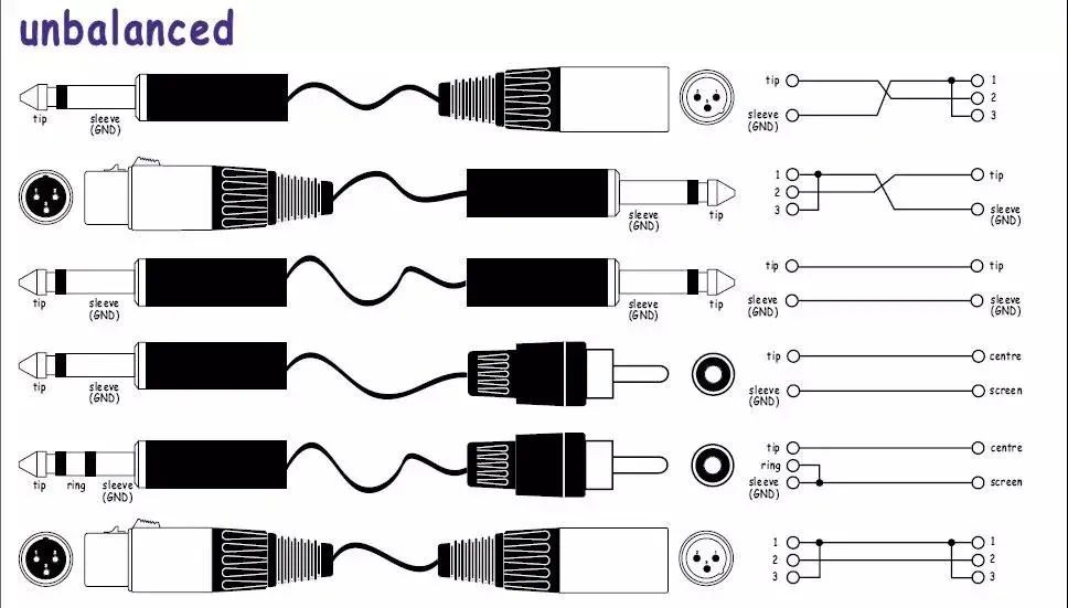 五,話筒到調(diào)音臺、到周邊、到功放-----平衡 方式的音頻連接線:卡儂公母線信號線的接法