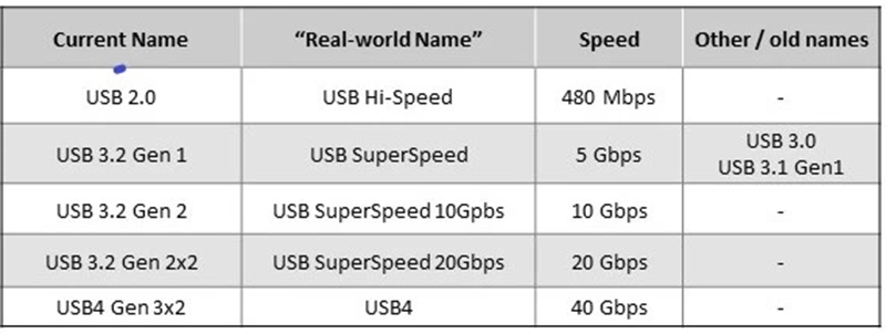 USB-Implementers Forum (USB-IF) 對該標準進行了四次重大修訂1。它于 1996 年首次進行標準化,并一直在以更高的速度發(fā)展并允許更大的功率承載能力。USB 標準從 1.0 版開始,一直發(fā)展到 2.0 版、3.x 版,目前更新至第 4 版、USB4。 表 1 列出了從 2.0 到 USB4 的版本,并顯示了每個版本的能力是如何大幅增加的。