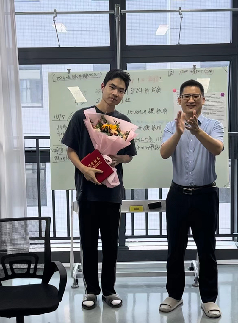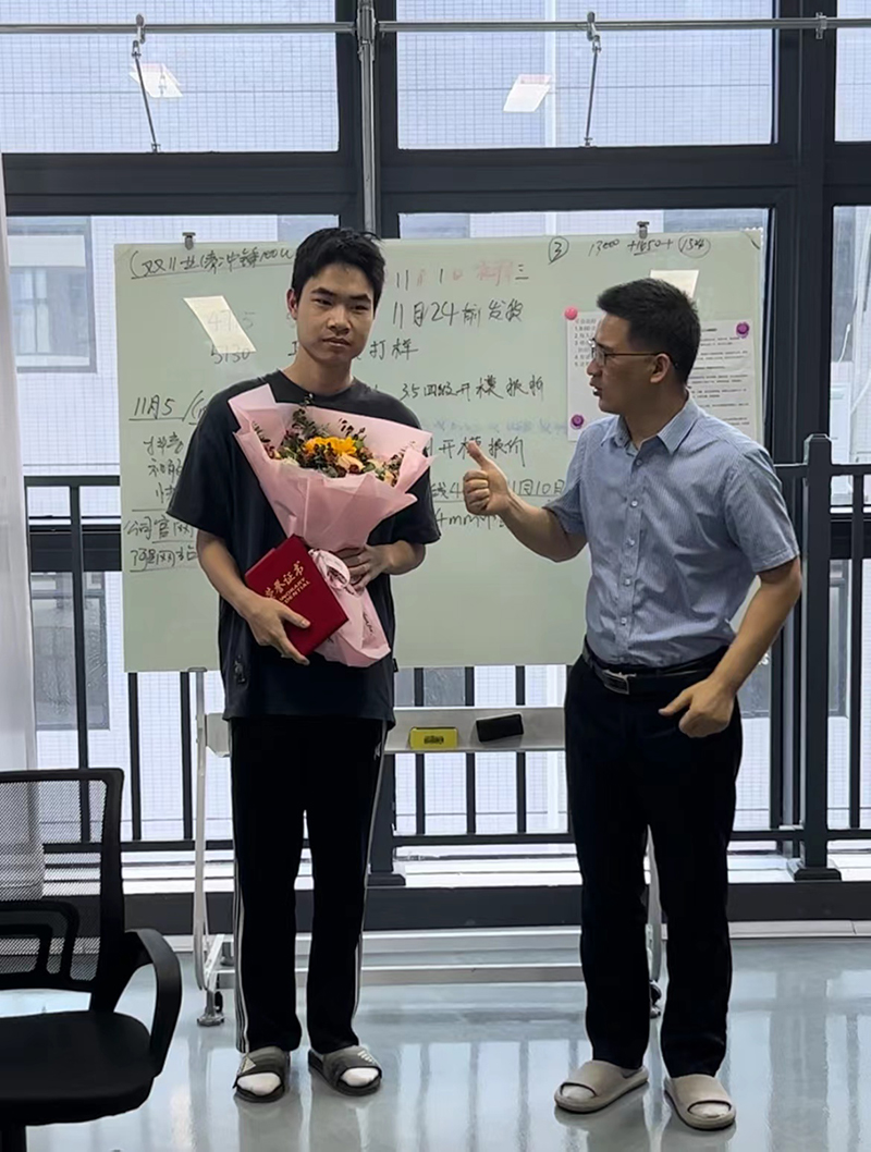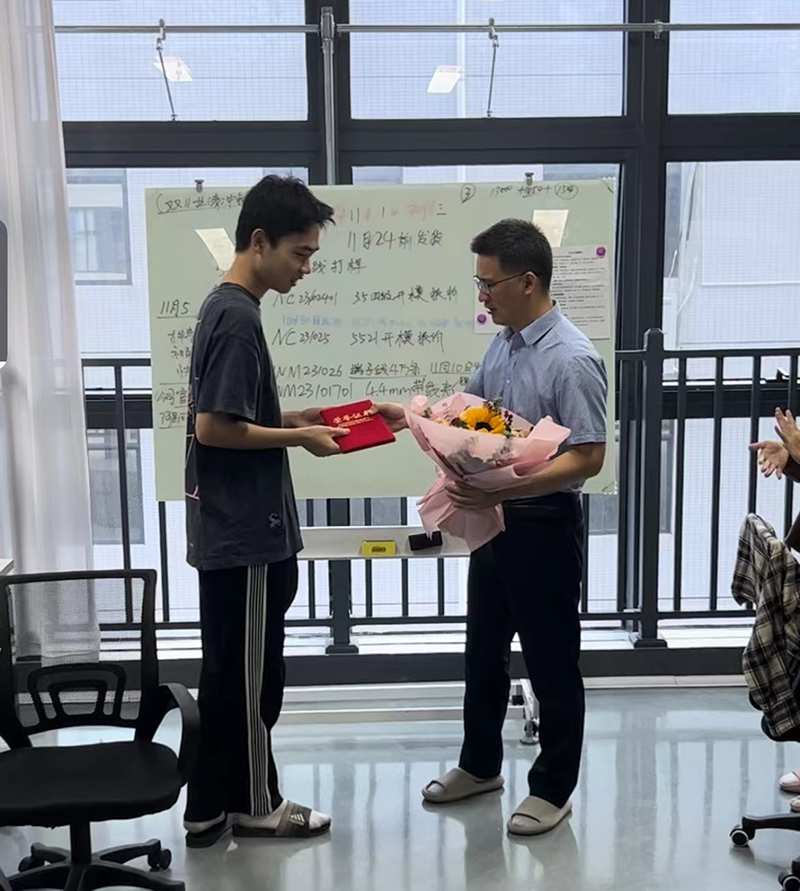 江總為優秀員工頒發榮譽證書及鮮花