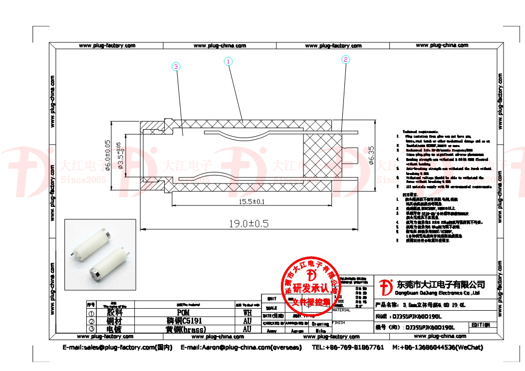 產(chǎn)品說明:3.5mm立體塑膠6.0D 19.0L 鍍鎳白膠 耳機(jī)母座