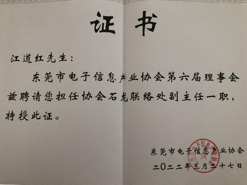 好消息!大江電子江道紅先生擔任協會石龍聯絡處副主任一職