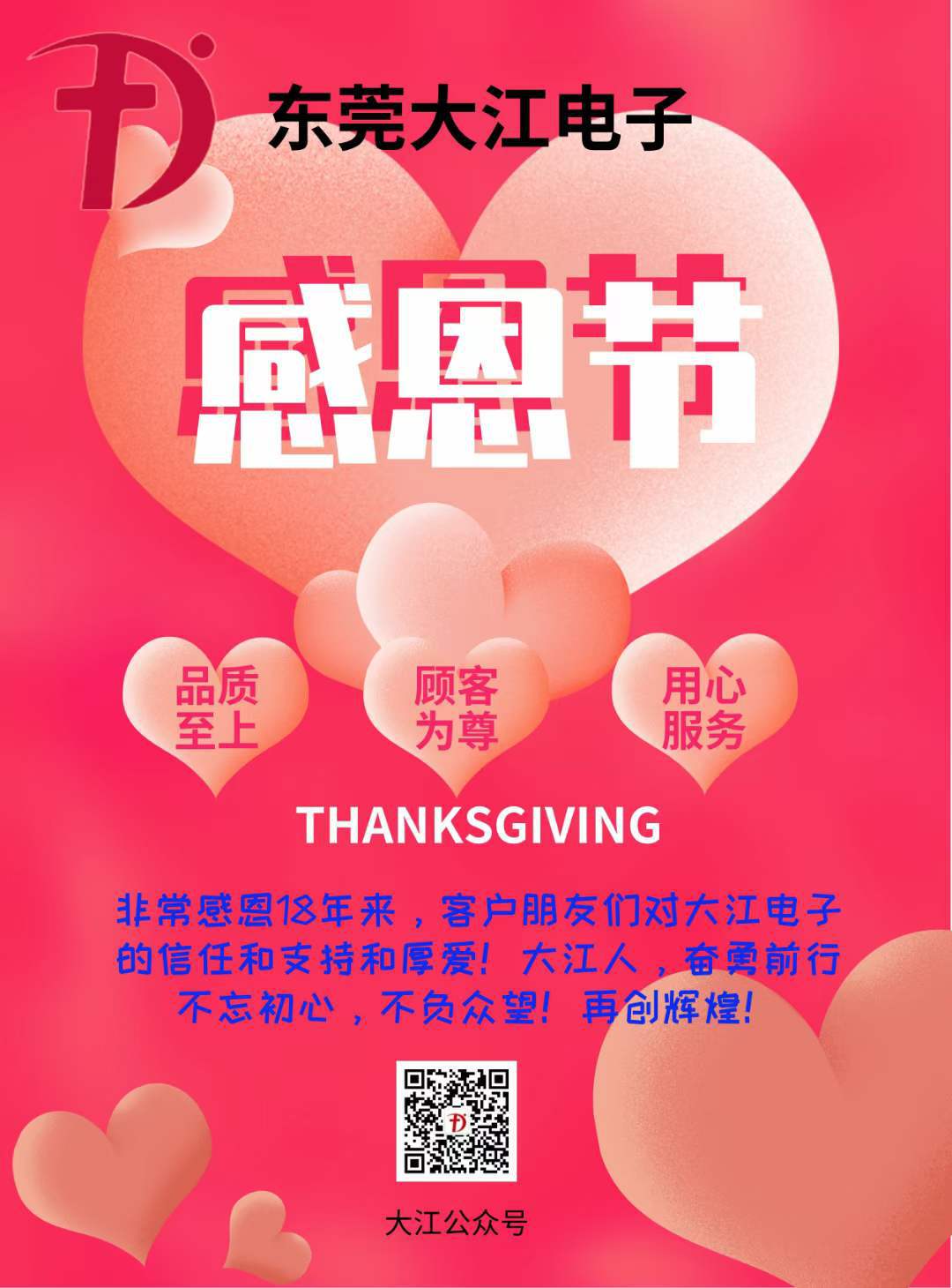 非常感恩18年來,客戶朋友們對大江電子的信任和支持和厚愛!大江人,奮勇前行,不忘初心,不負眾望!再創輝煌!
