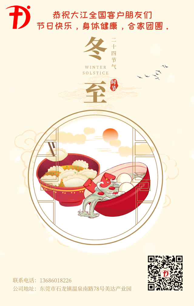 祝愿東莞市大江電子有限公司全體員工及全國客戶朋友們冬至快樂,身體健康,合家團圓,工作順利!